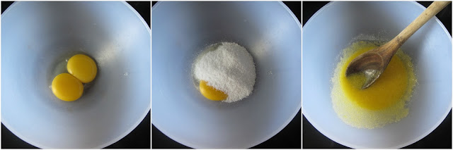 Klop die eiergele saam en meng dit dan met die suiker.